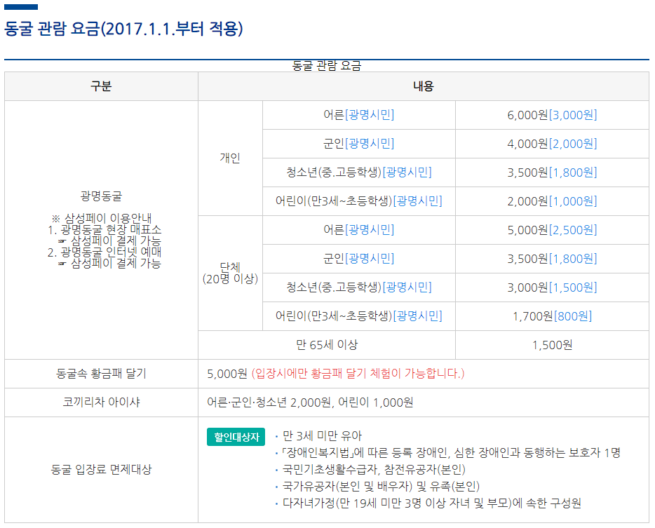 광명동굴 입장료 할인