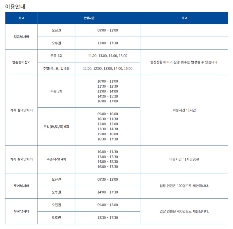 가족들과 함께 좋은 경험을 위해 이용 시 아래 이용 시간 및 요금 확인 후 입장하시면 좋을 것 같습니다.