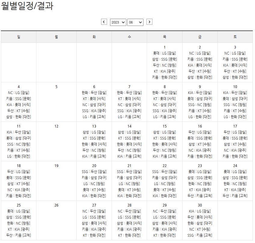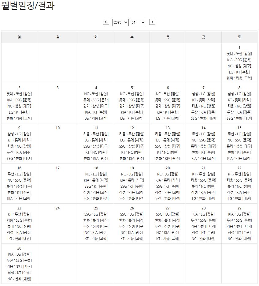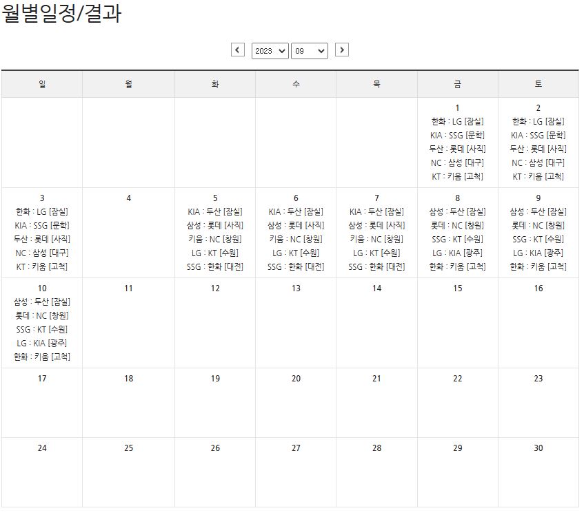 2023년 4월 1일을 시작으로 9월 10일까지 경기는 계속됩니다